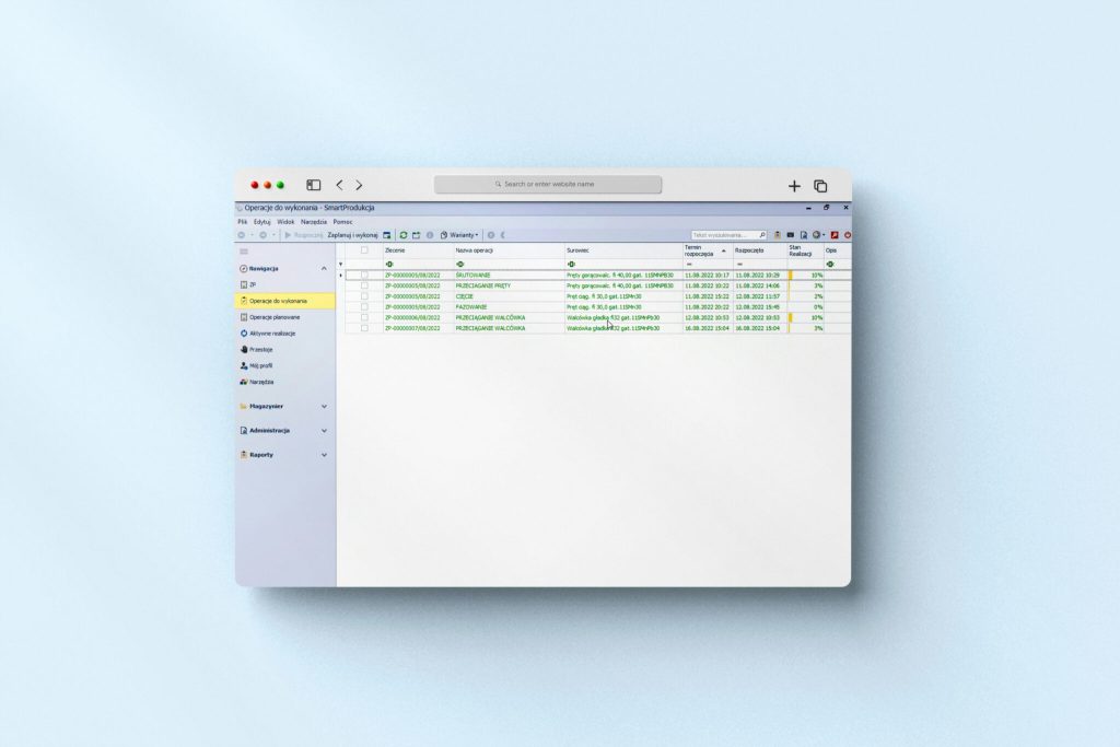 Operatorzy wykonując zlecenia w SMART PRODUKCJI dysponują danymi co do podanych surowców oraz ilości technologicznych potrzebnych do produkcji. W czasie pracy rejestrują oni rzeczywiste ilości zużytych materiałów, a także odpady oraz uszkodzone sztuki. Po każdej zaraportowanej przez pracownika operacji w systemie zostają rozchodowane zużyte surowce (dokument RW), a w przypadku wyrobów gotowych przyjęcie na odpowiedni magazyn – wyrobów gotowych, półproduktów, braków (dokument PW).