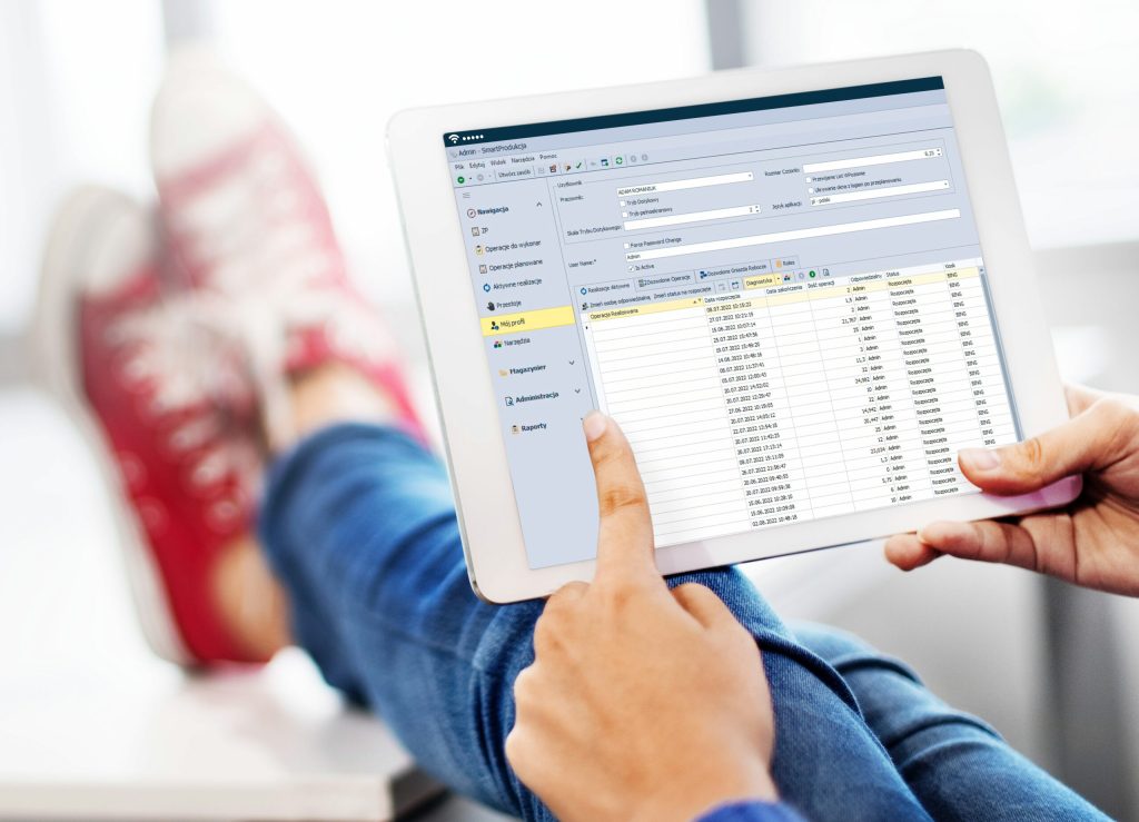 SMART PRODUKCJA zastępuje papierowe karty pracy lub przewodniki produkcyjne. Wykorzystanie aplikacji pozwala na rejestrację wszystkich zdarzeń produkcyjnych w czasie rzeczywistym, bez zbędnych opóźnień. Daje to kadrze kierowniczej możliwość podejmowania szybkich działań dotyczących sprzedaży, zaopatrzenia w surowce, a także analizy kosztów.