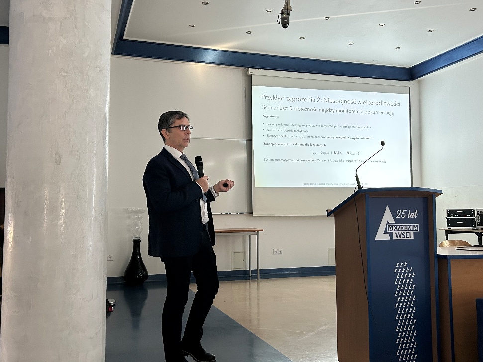 After a break for informal discussions, Dr. Tomasz Cieplak delivered the second thematic lecture. The presentation focused on the crucial issues of information quality management within sensitive and security-critical systems. This topic was discussed in detail using a specific example of infrastructure supporting patient electronic medical records.