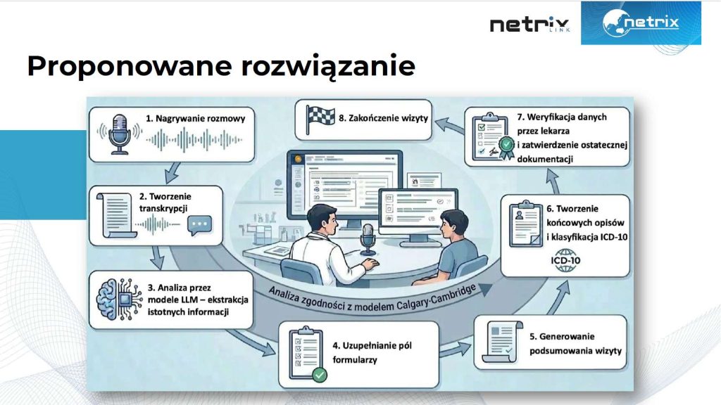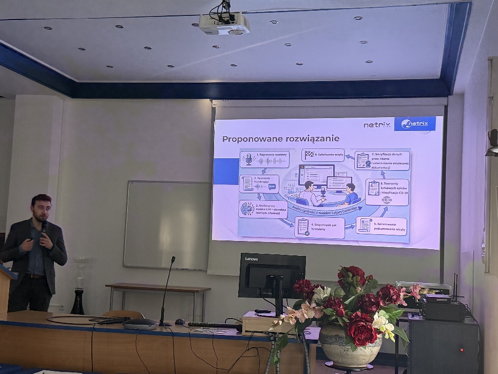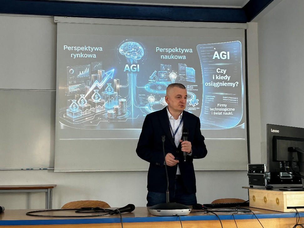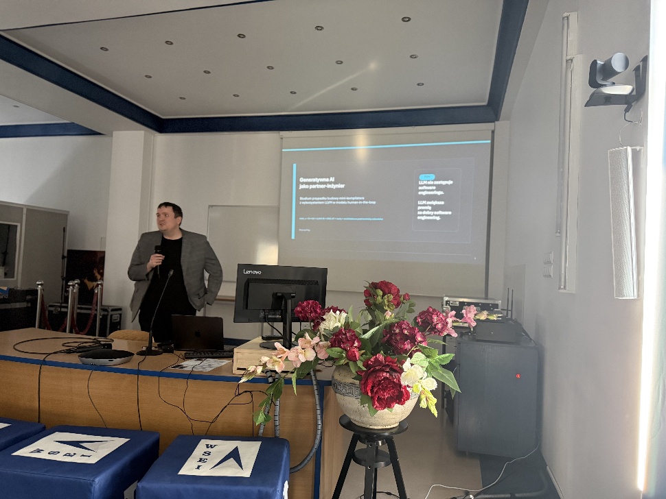 Dr. Tomasz Cieplak chaired the second session, which focused on innovative implementations. In this session, Damian Pliszczuk presented a project for an intelligent system supporting medical appointments using semantic analysis mechanisms for doctor-patient dialogue. Łukasz Gugała delivered a lecture on the use of advanced recursive architecture with a built-in attention mechanism for speech signal processing and analysis. The session concluded with a presentation by Dr. Michał Maj, who analyzed generative artificial intelligence as an engineering partner. He discussed an in-depth case study of building a specialized mini-compiler using an algorithm in a model that incorporates human factors in the decision-making loop.