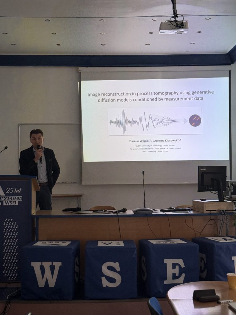 The next expert presentation was the third thematic lecture, delivered by Dr. Grzegorz Kłosowski, Eng. The main discussion focused on optimization issues in process tomography, particularly image reconstruction. The tool facilitating these operations was intended to be generative diffusion models conditioned by appropriate sets of measurement data collected from physical installations.
