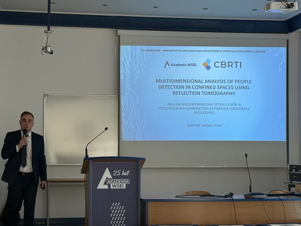 The first scientific session, chaired by Professor Edward Kozłowski, featured a presentation by Marcin Dziadosz, who described the application of machine learning algorithms in a hybrid approach to the measurement-reconstruction analysis of multiple inclusions. Łukasz Ciuraj focused on simulation research focused on reinforcement learning for industrial digital twin control systems. Michał Styła presented advanced analytical capabilities for detecting people moving in confined spaces, demonstrating the achievements of multidimensional reflection tomography.